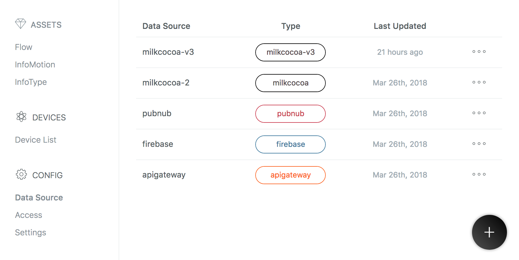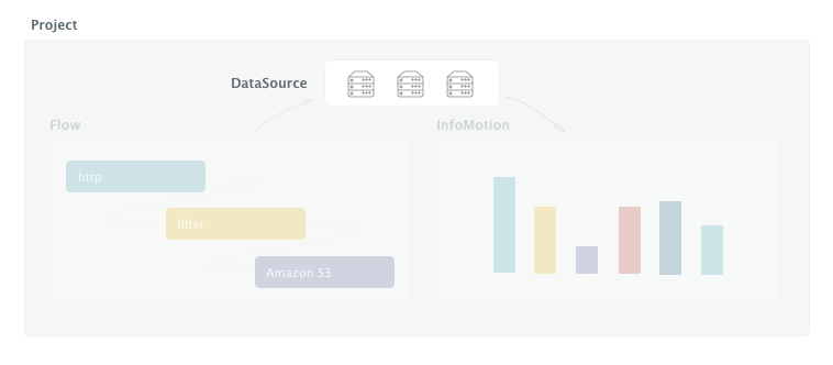 A DataSource is a data connection used by an InfoMotion (Graph). Registering a DataSource is necessary to use InfoMotion. A Flow can save data to a DataSource.