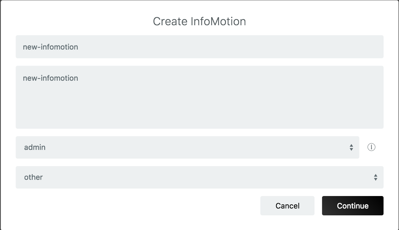 With dataSource created and an InfoType uploaded select「Create InfoMotion」to create a dashboard.